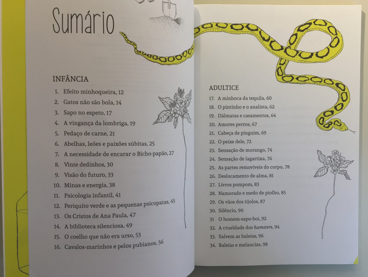 Cobras em compota reúne um conjunto brilhante, inventivo e divertido de crônicas autobiográficas da autora. Os textos da primeira parte debruçam-se sobre os acontecimentos da sua infância; os da segunda, sobre os de sua “adultice”. Tanto em um quanto em outro período de tempo, de algum modo nos mantemos confinados, mas sempre é possível encontrar brechas para fugir de quando em quando.