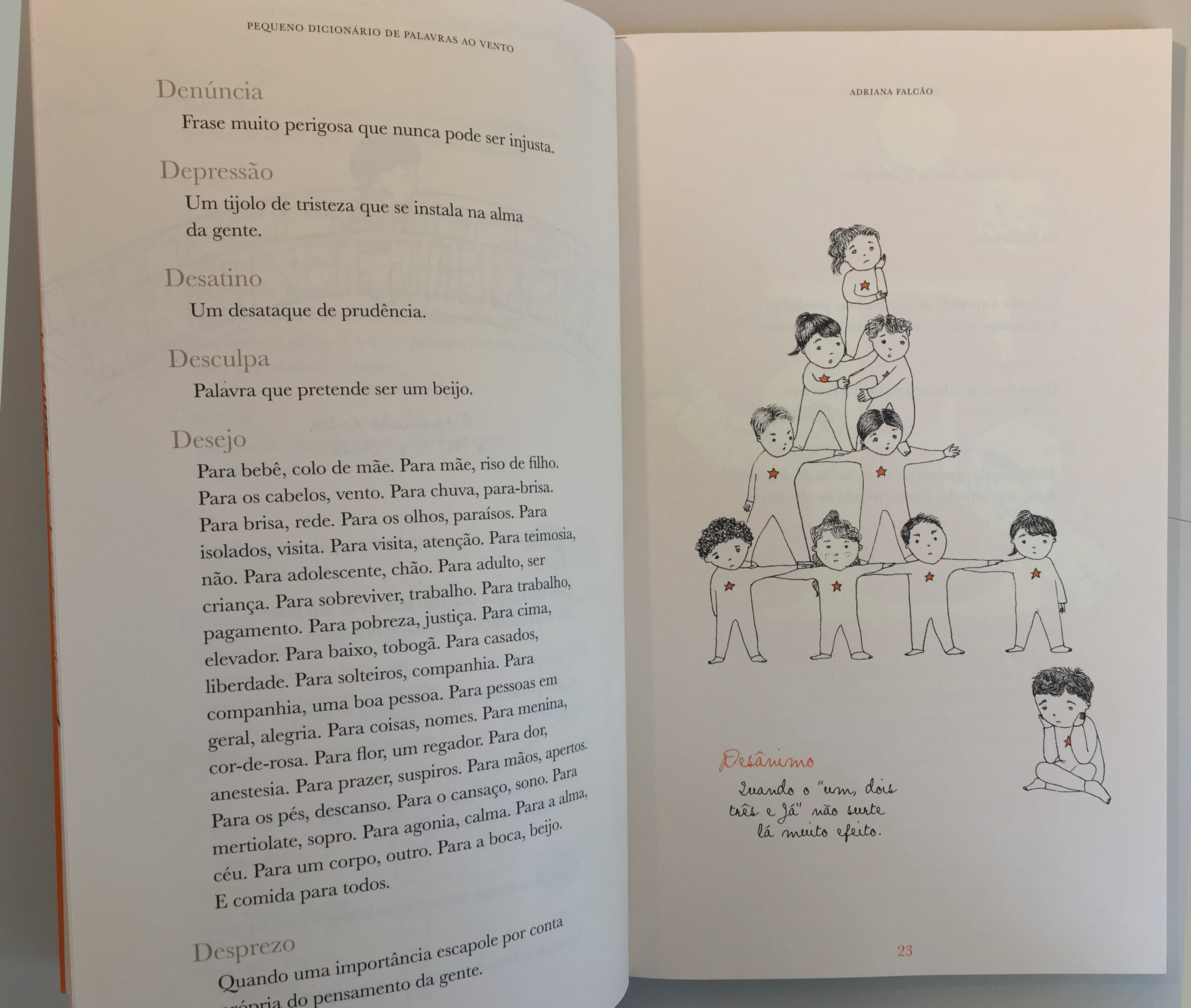 Jovens e adultos vão se divertir com as definições que ela encontrou para palavras com que a vida a confrontou e que agora são soltas ao vento, para nos emocionar e fazer pensar.