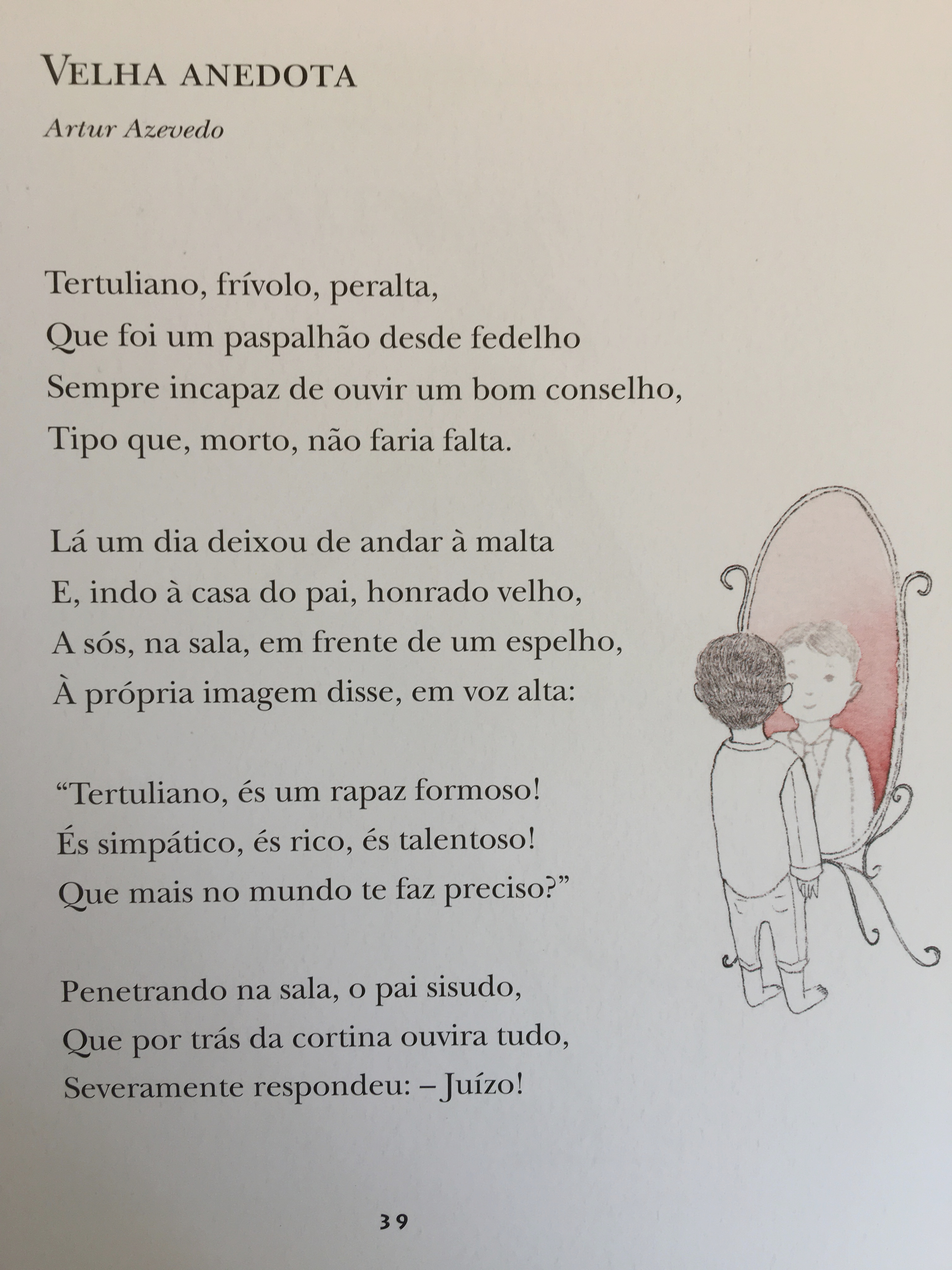 Este livro é uma verdadeira festa. Nele a Ruth Rocha, junto com sua filha Mariana, reuniu um montão de poemas que elas adoram. Alguns têm mais de cem anos, como os de Olavo Bilac e de Fagundes Varela; outros, são de poetas contemporâneos, ou seja, do nosso tempo, como os de José Paulo Paes, Adélia Prado, Chacal, Augusto de Campos e Renata Pallottini.
